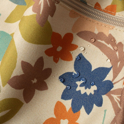 ペールオレンジをベースに、金木犀のような鮮やかなオレンジや、瑠璃色をアクセントカラーにボタニカル柄を描いたフローラ1。柔らで秋の訪れを感じさせるカラーパレットです。アースカラーとの相性はもちろん、ブラックやバーガンディーなど深みのある着こなしに合わせても大人な印象に。