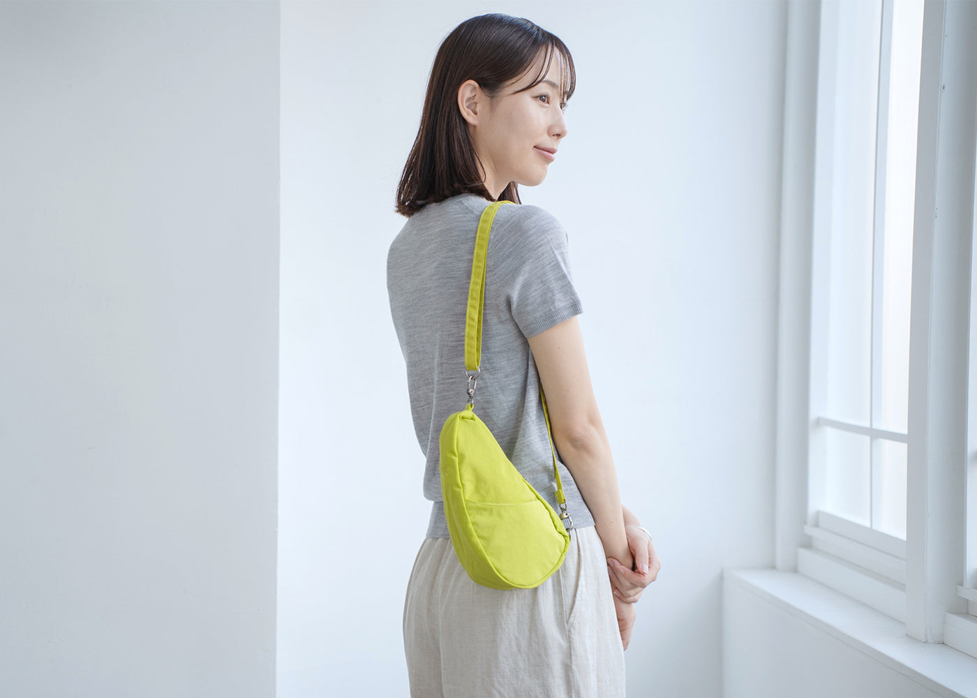 - ヘルシーバックバッグの生地は絶妙な色合い・素材感のため、お部屋の照明やご覧いただく環境により色味や印象が異なって見える場合がございます。