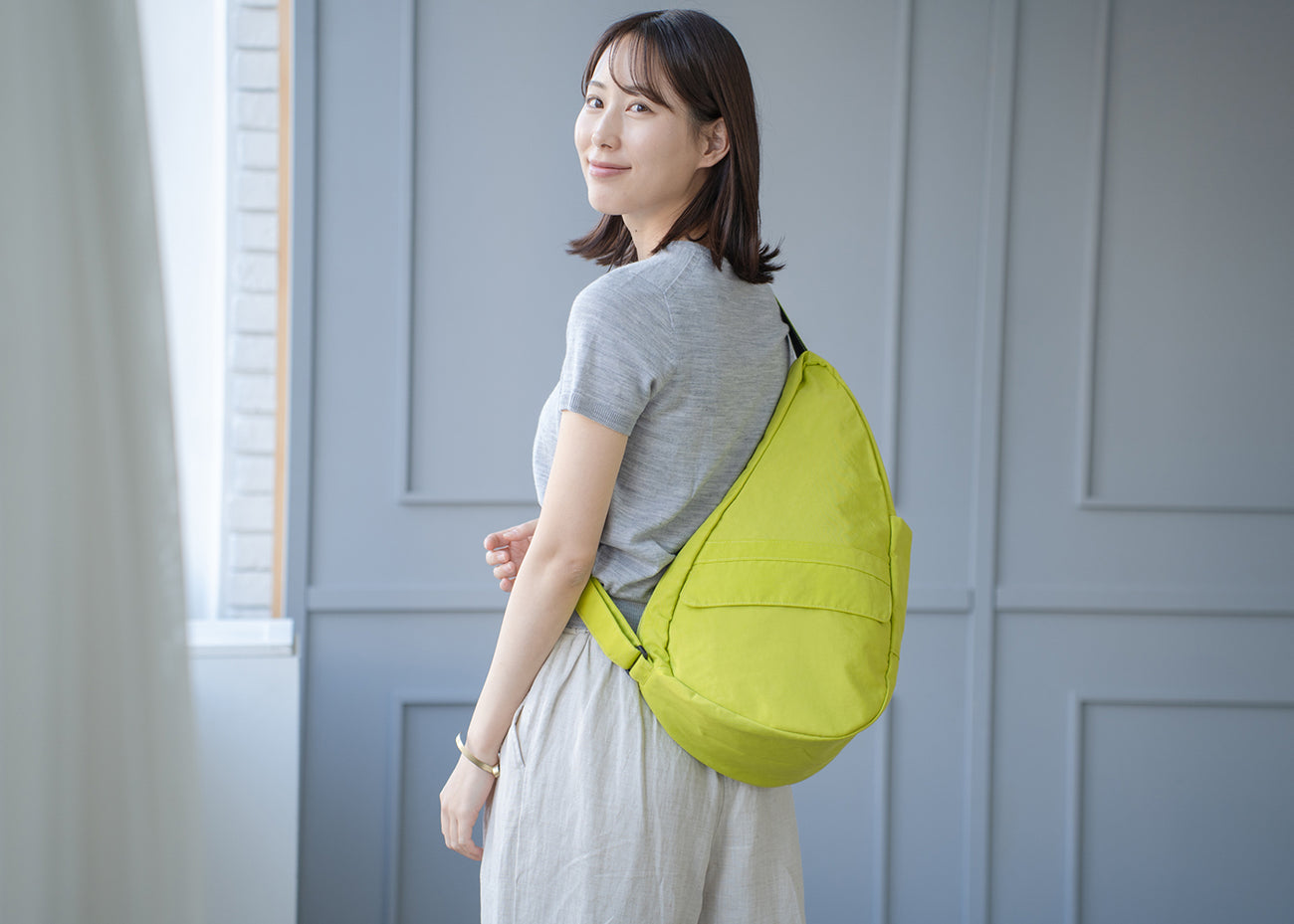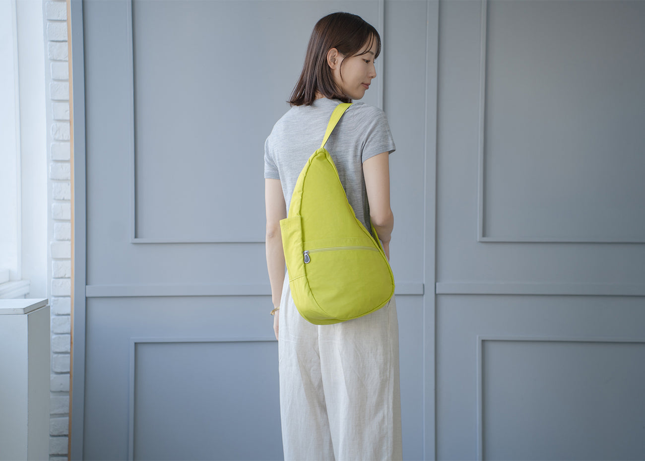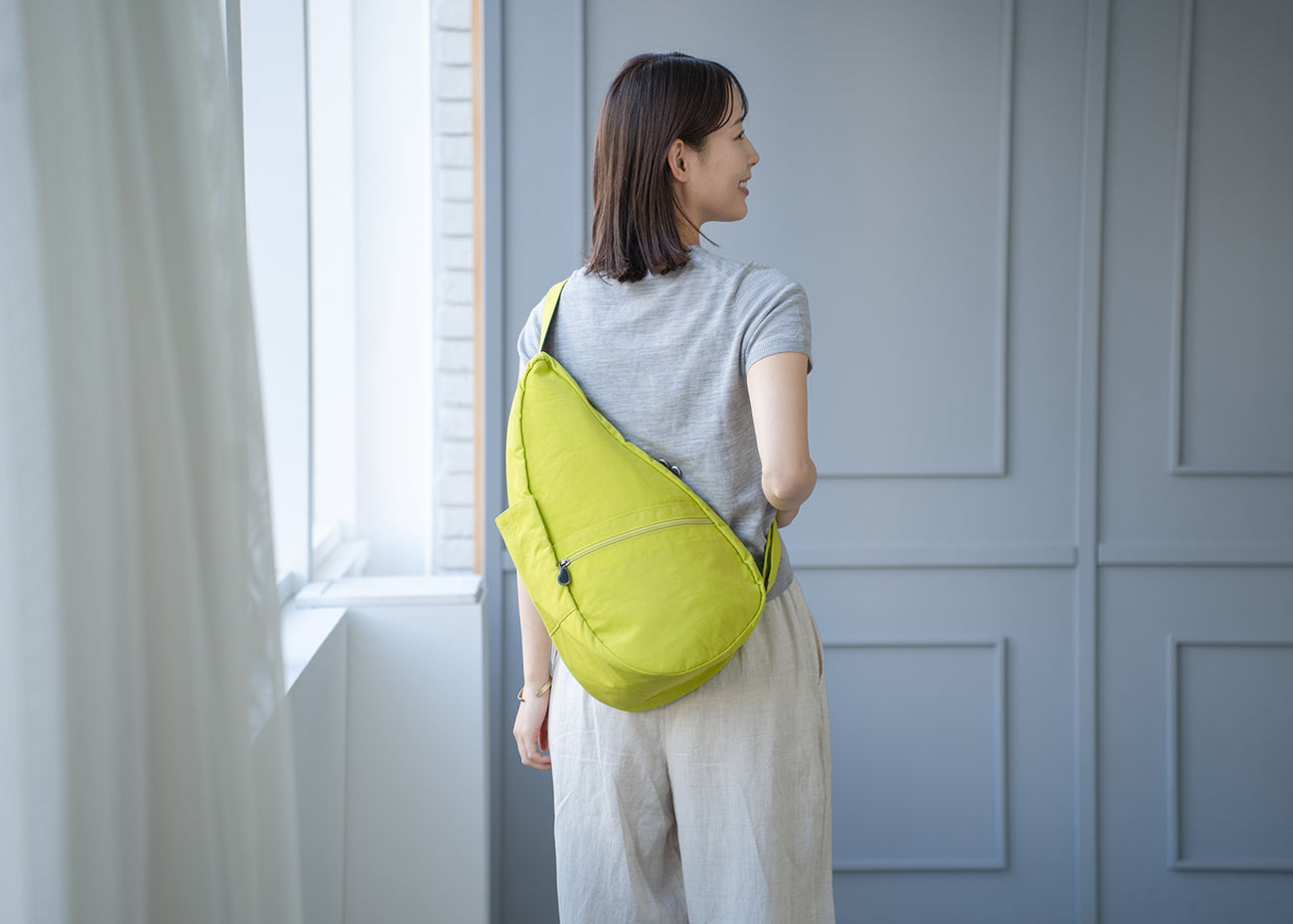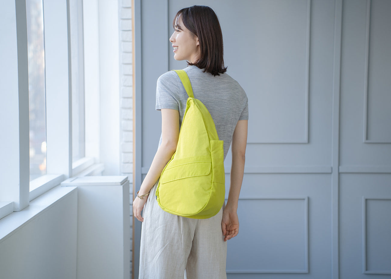 - ヘルシーバックバッグの生地は絶妙な色合い・素材感のため、お部屋の照明やご覧いただく環境により色味や印象が異なって見える場合がございます。