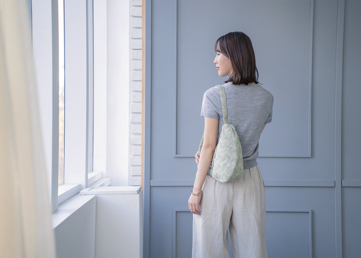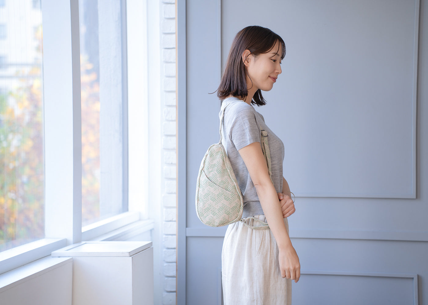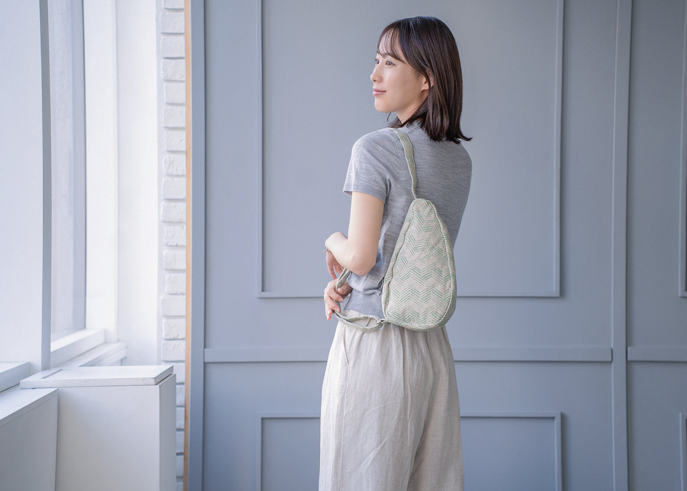 - ヘルシーバックバッグの生地は絶妙な色合い・素材感のため、お部屋の照明やご覧いただく環境により色味や印象が異なって見える場合がございます。
