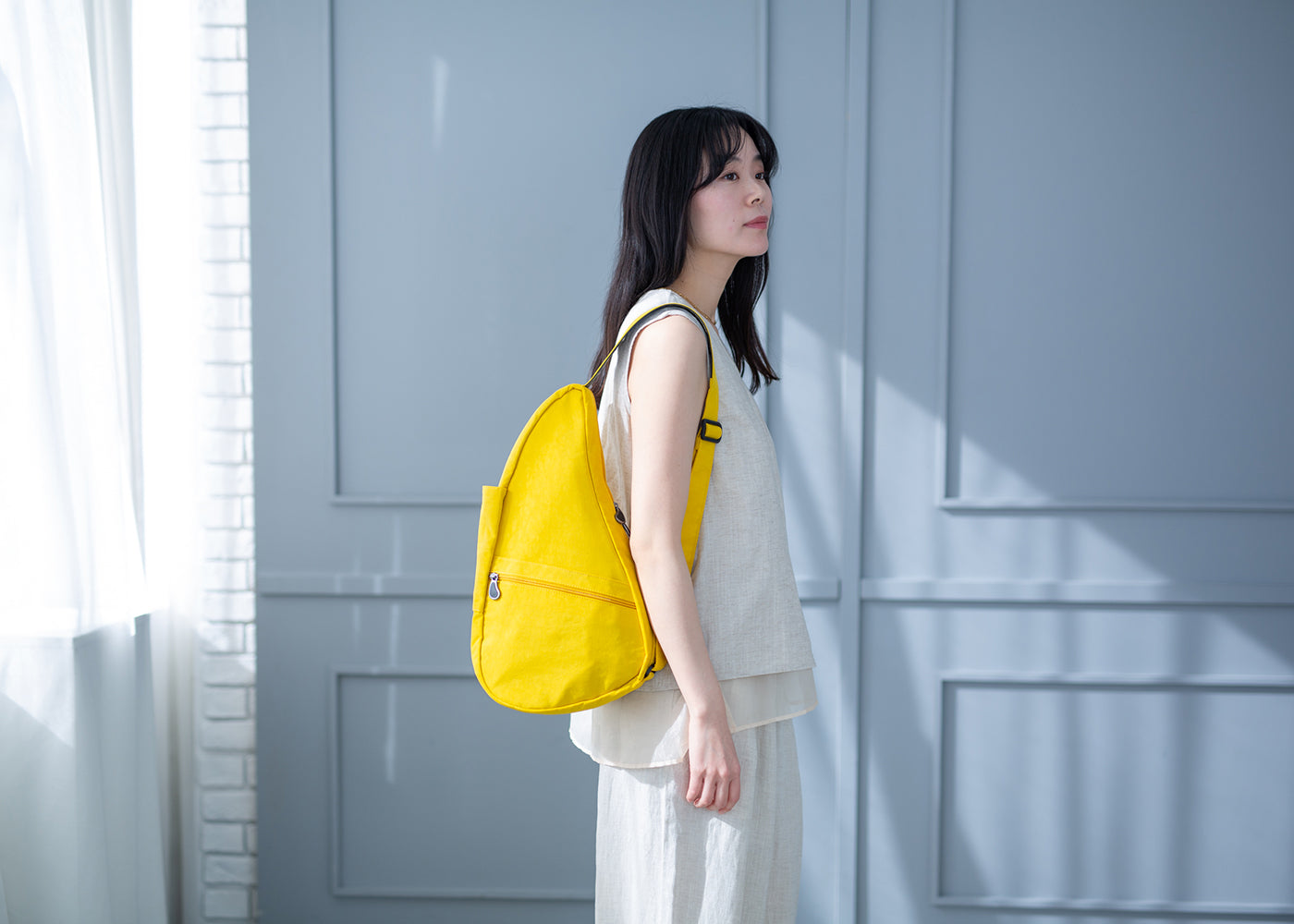 - ヘルシーバックバッグの生地は絶妙な色合い・素材感のため、お部屋の照明やご覧いただく環境により色味や印象が異なって見える場合がございます。